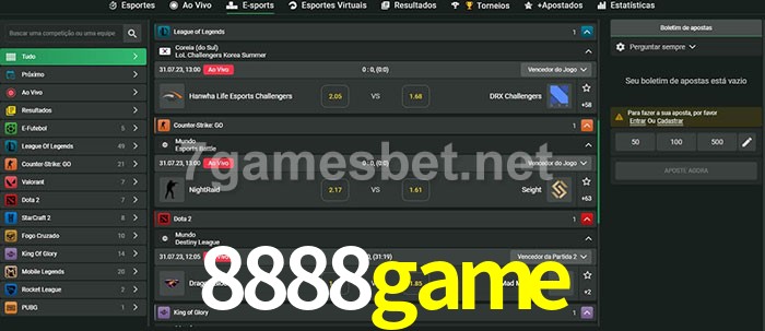 A aposta 8888game oferece aos jogadores a experiência mais conveniente de apostas em eSports!